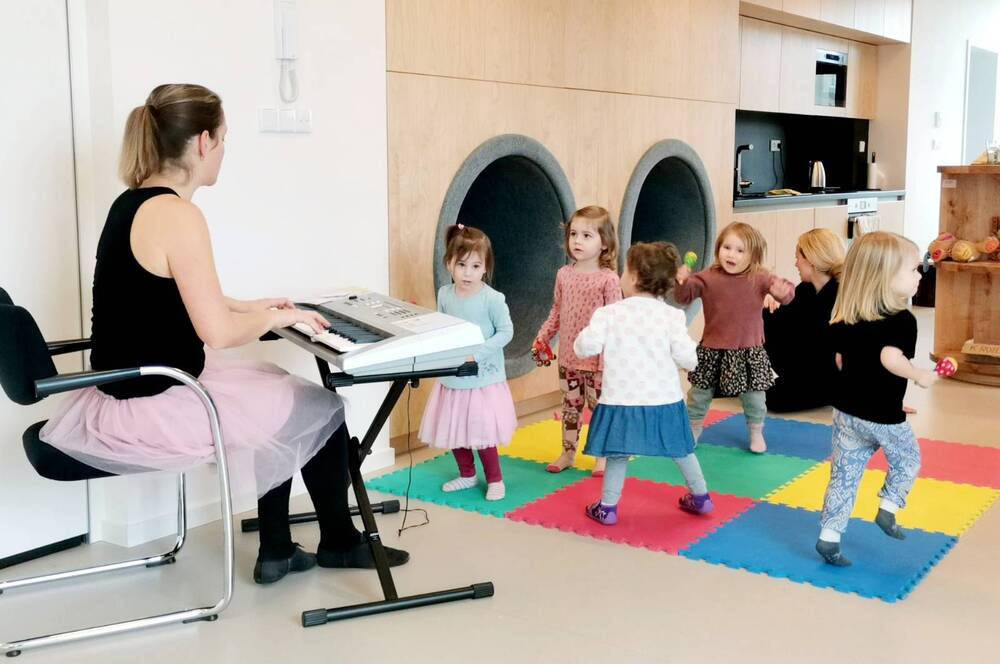 Děti v tomto věku přímo nasávají nové podněty. Řeč, pohyb a myšlení jsou úzce provázány. Proto budeme hodně zpívat, naučíme se spoustu říkadel, které mají pevný rytmus a pomohou nám cítit dynamiku řeči. Procítíme rytmus hudby za doprovodu klavíru i vlastní interpretace na Orffovy nástroje a zapojíme celé tělíčko v tanci. S dětmi prozkoumáme hudebně i pohybově různá témata (barvy, zvířátka v zimě, čarodějky apod.) a společně s rodiči vstoupíme do dětského světa plného radosti a her. V přátelském a respektujícím prostředí bude také možnost poznat nové kamarády a zapojit se do kolektivu.